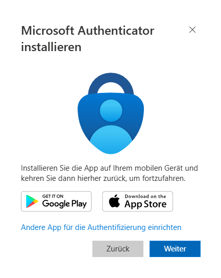 Schritt 6: Installieren sie den Microsoft Authenticator und klicken Sie auf "Weiter"