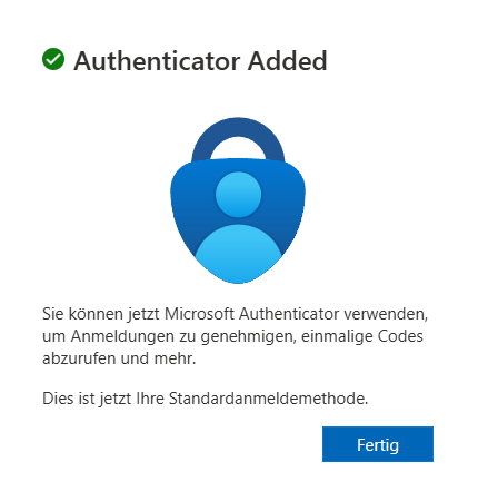 Fertig: Sie haben den Microsoft Authenticator erfolgreich als weiteren Faktor hinterlegt